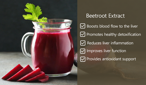 Beetroot Extract enhances circulation, aiding detoxification and reducing oxidative stress for peak liver function.