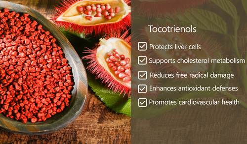 Tocotrienols shield liver cells, support cholesterol metabolism, and promote overall liver health and weight balance.